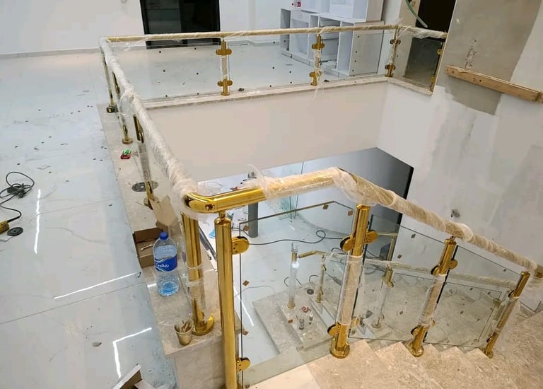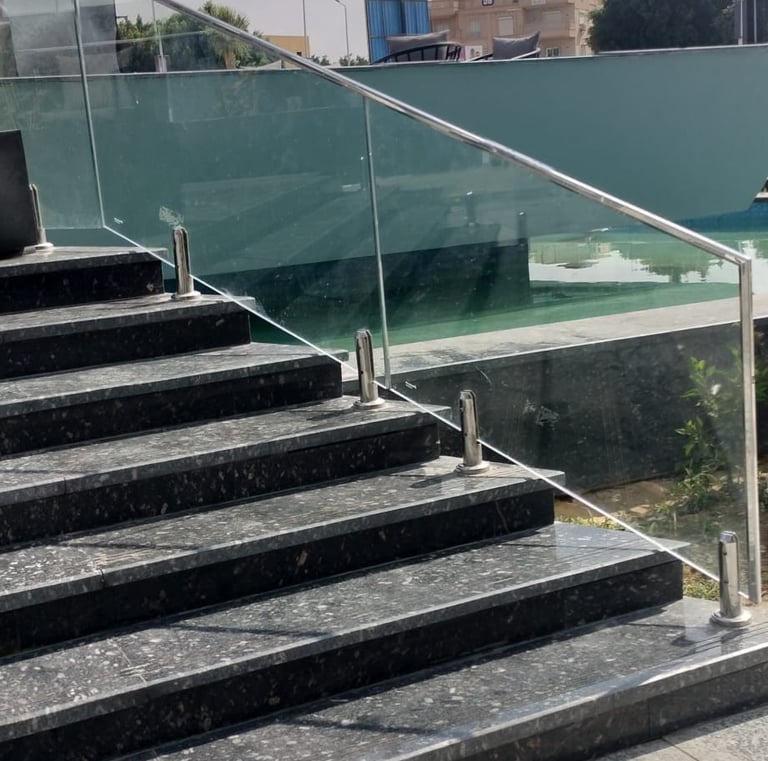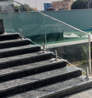 درابزين زجاجي مع اكسسوارات ستانلس تضيف لمسة عصرية